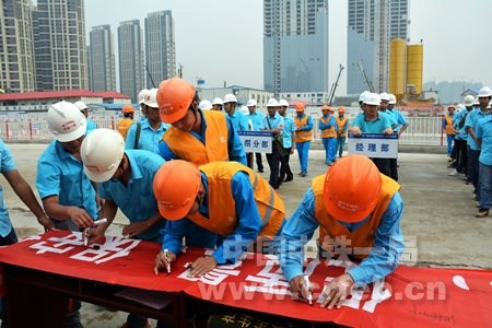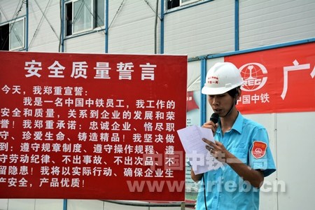 廣佛環(huán)項目安全總監(jiān)張榮慶、隧道分部經理彭銳介紹了東平2號隧道施工安全教育培訓情況;技術主管覃景貴介紹了隧道主體結構施工概況;全體與會人員進行“安全質量誓言”宣誓;孟磊代表全體群眾安全監(jiān)督員宣讀了群安員倡議書;彭洋代表全體青安崗崗員宣讀了青安崗倡議書;隨后全體與會人員在“反三違、查隱患、促質量、保安全”橫幅上簽名。