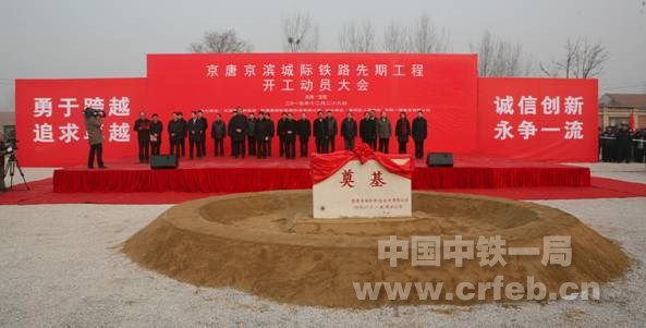 12月29日,京唐京濱城際鐵路先期工程開工動員大會在中鐵一局天津公司天津寶坻南站維修工區項目工地召開,大會的主題是“建設軌道上的京津冀,加快京津冀協同發展”。開工動員會由天津市人民政府、京津冀城際鐵路投資有限公司主辦,寶坻區人民政府、中鐵一局集團有限公司協辦。