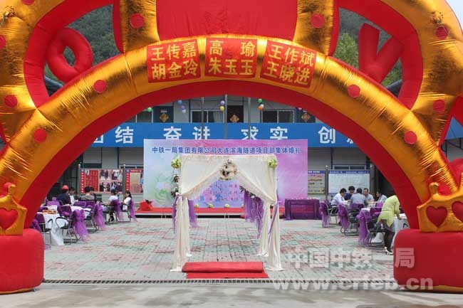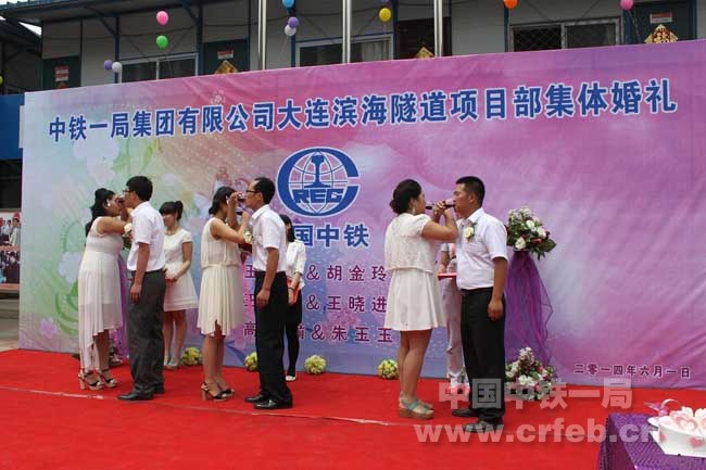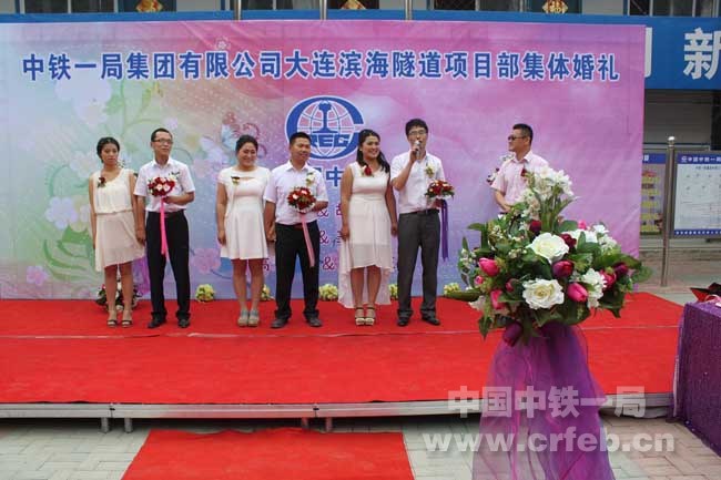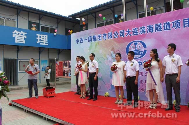 6月1日,大連濱海隧道二標項目部為三對奮戰在施工一線的新人們舉辦了集體婚禮。