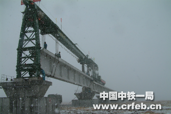 風雪中架梁作業
