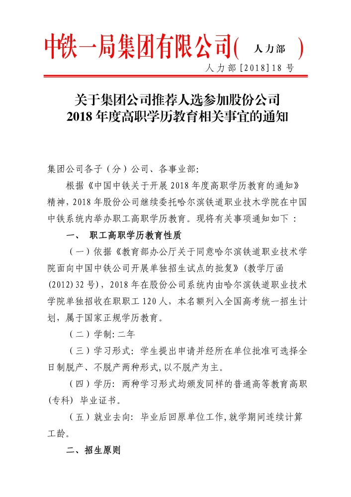 關于集團公司推薦人選參加股份公司2018年度高職學歷教育相關事宜的通知