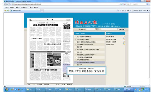 在本次宣傳過程中,集團公司社保部能夠結合建筑施工企業的實際情況,有針對性的選擇工傷保險政策宣傳的點和面,先后在二公司長春地鐵項目、龍永項目,城市軌道公司寧波TJ2101項目、廣州621項目、無錫1號線項目、西安地鐵三號線、四號線項目,城市建設公司西安中鐵鉑豐尚都項目,建筑工程機械公司所屬的工程機械廠、鋼結構制造分公司,上海分公司蘇州中環項目、蘇州星塘街項目、南通連申項目等18個施工項目采取懸掛橫幅、擺放展板、舉辦專題講座、工傷保險知識培訓、勞務工座談等多種形式集中對員工進行工傷保險集中宣傳,5月8日,陜西工人報在第二版對建筑工程機械公司工傷保險集中宣傳活動進行了刊載。