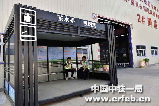 在做好這些常規的標準化工作外,5標段鋼筋加工場內電纜線固定部分采用了埋管設置或線槽敷設,使以往凌亂不堪、易生變故、線纜滿地的場地變成了干干凈凈的加工環境。加工廠外,設立了茶水亭、吸煙室,使員工有專門的小憩場所,又保證了廠內干凈衛生,體現出項目部的人性化管理,做到“以人為本”。
