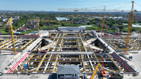 海門北站及兩側明挖隧道連續開挖長度5.5公里,最大開挖深度為29.4米,為目前國內最長的超大超深基坑地下高鐵站。基坑開挖范圍內地下水豐富,深基坑降水、開挖、支護及監測困難與風險交織疊加。
