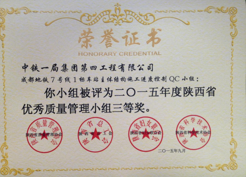成都地鐵7號線1標主體結(jié)構(gòu)施工進度控制QC被評2015年度陜西省QC三...