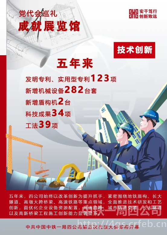 五年來,四公司以科技為第一生產(chǎn)力的理念,獲得了顯著技術(shù)突破和技術(shù)成效。新增機(jī)械設(shè)備282臺(tái)套,總功率4.41萬千瓦;新增盾構(gòu)機(jī)2臺(tái)。完成科技成果34項(xiàng),其中省部級(jí)28項(xiàng);共完成工法39項(xiàng),其中省部級(jí)工法22項(xiàng);榮獲發(fā)明專利、實(shí)用型專利123項(xiàng)。期間連續(xù)3年獲得股份公司20強(qiáng),先后榮獲“中央企業(yè)先進(jìn)集體”“中國(guó)中鐵先進(jìn)三級(jí)工程公司”“陜西省建筑業(yè)AAA級(jí)信用企業(yè)”等榮譽(yù)稱號(hào)。培育專家型技術(shù)人員隊(duì)伍,成立了專家創(chuàng)新工作室,推動(dòng)企業(yè)重難點(diǎn)工程技術(shù)攻關(guān)。這些突破和榮譽(yù),是企業(yè)改革創(chuàng)新紅利的不斷釋放,也是高質(zhì)量發(fā)展取得積極成效,為國(guó)企改革三年行動(dòng)的收官之年、決勝之年夯實(shí)勝利基礎(chǔ)。
