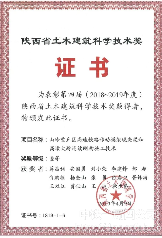 山嶺重丘區(qū)高速鐵路移動(dòng)模架現(xiàn)澆梁和高墩大跨連續(xù)剛構(gòu)施工技術(shù)一等獎(jiǎng)