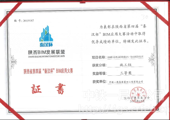 2019年秦漢杯BIM應(yīng)用大賽三等獎(jiǎng)
