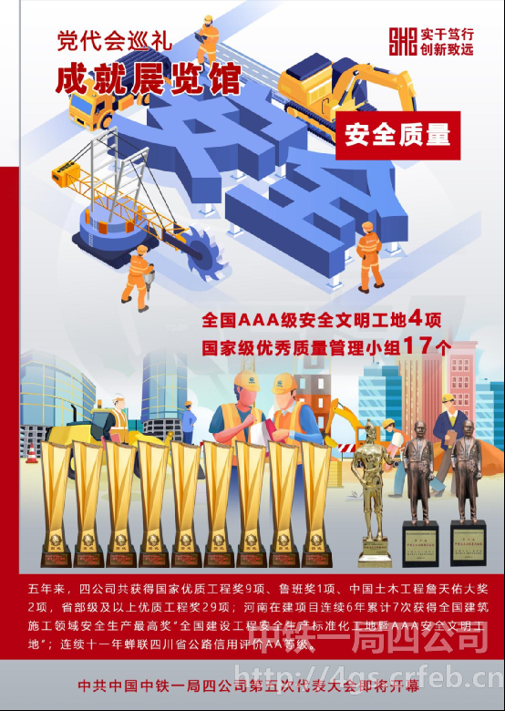 第四次黨代會以來,中鐵一局四公司安全質量工作以質量安全文化為引領,始終堅持以問題為導向,全面落實各級安全質量責任,全面推進“管監”責任落實,標本兼治,構建起了較為完善的安全質量管理體系,安全質量工作實現了持續穩定可控,創優創譽成績斐然。
