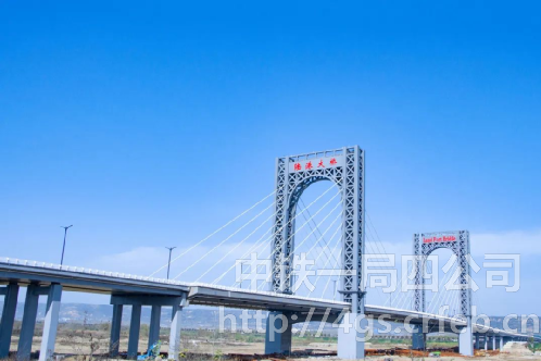 寶雞陸港大橋是寶雞市渭河上高度最高、寬度最寬、跨度最大的城市橋梁,全長1272米,橋梁上跨南北河堤路、渭河及連霍高速,為雙向八車道,設計時速每小時60公里。主橋為雙塔雙索面鋼箱梁斜拉橋,跨徑布置為(102+208+102)米,大橋橫梁整體提升重量大、同步控制要求高、定位精調(diào)難度大、空中懸停時間長、施工組織和技術要求高。門式鋼桁架主塔提升施工工藝應用于格構式鋼塔斜拉橋塔頂拱形橫梁的施工屬國內(nèi)首次,項目榮獲2020年度“中國中鐵杯”優(yōu)質(zhì)工程。