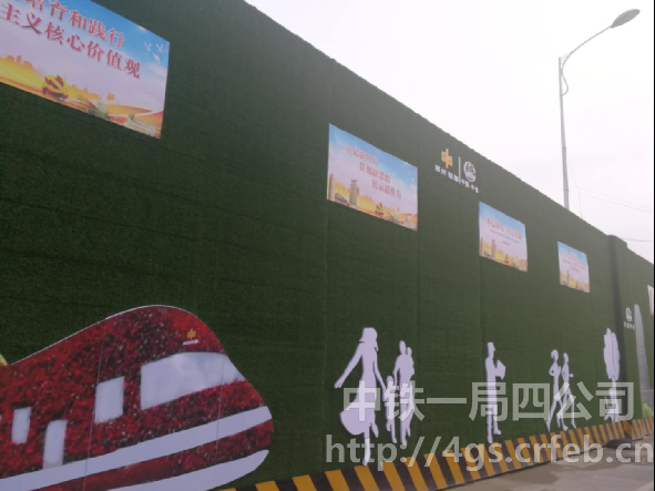 在繁華熱鬧的鄭州市火車站西廣場北邊,緊鄰站北街北側,被工地大門一分為二的高5.5米圍擋(草綠色文化墻)很是搶眼,文化墻上除了企業標識之外,還繪制了大量富有河南地方文化特色的名勝古跡、工人勞動場面以及“綠水青山就是金山銀山”等環保標語,這大門兩側各長約150米的文化墻從色彩和內容上看起來讓人賞心悅目,給人來人往的火車站廣場,增添了都市一道靚麗的風景線。這就是中鐵一局四公司鄭州市政控制節點工程施工現場,該項目自2017年7月10日開工以來,項目部以企業核心價值觀為統領,將項目文化融入項目管理的全過程,呈現出創新共享、合作共贏的項目文化新特色,項目部在項目管理、安全質量、成本管控、團隊建設等方面齊頭并進全面發展,同時也多次受到建設方好評,項目負責人陳宏俊榮獲集團公司黨委優秀共產黨員榮譽稱號,項目部黨支部被四公司黨委表彰為先進黨支部,支部書記樊榮被四公司黨委表彰為優秀黨務工作者。