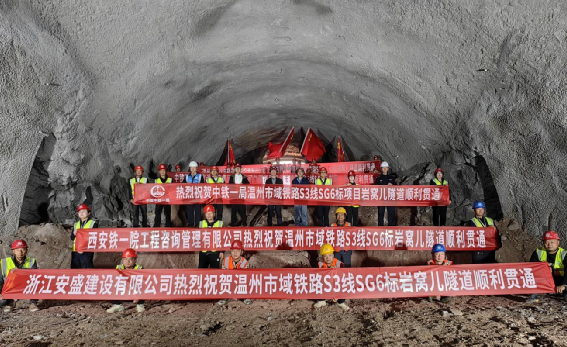 浙江溫州訊:10月30日上午,由中鐵一局承建的溫州市域鐵路S3線巖窩兒隧道順利貫通,標(biāo)志著溫州市域鐵路S3線建設(shè)取得重大階段性突破,為全線建成通車按下了“加速鍵”。