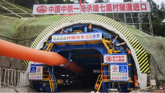 新建宜涪高鐵湖北段首板隧道正洞襯砌順利完成澆筑