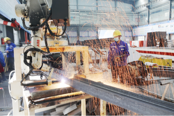 智能鋼構廠機器人激光切割鋼拱架——侯若斌攝