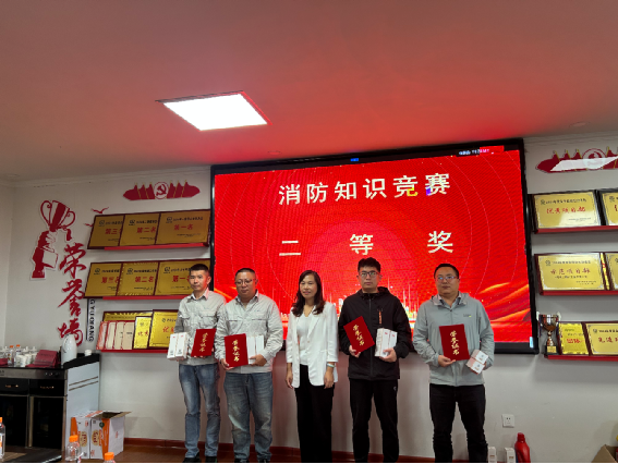 消防知識競賽二等獎獲獎選手與頒獎者合影