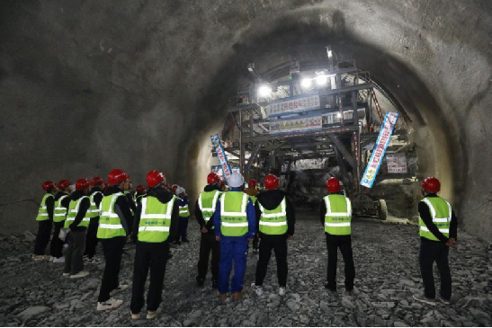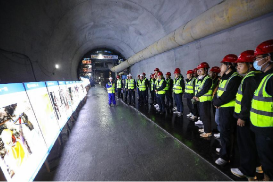 開幕式后,參賽選手還深入中鐵一局西渝高鐵康渝段站前二標一分部朱家山隧道出口,對項目加深炮孔角度定位工裝、邊墻泄水孔凹槽保護裝置、鎖腳錨管角度定位裝置等12項五小工裝的操作情況和使用特點進行了學習,并對雙側同步縱向灌注系統及多功能臺車施工工藝進行了了解。