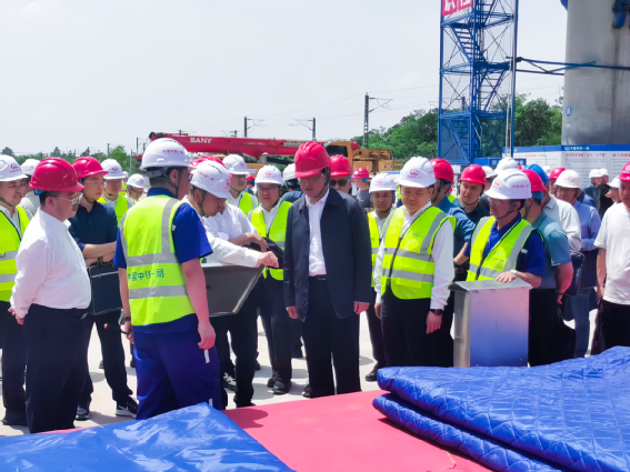 湖北麻城訊:4月25日,由4家鐵路局、7家建設(shè)公司及沿線施工、監(jiān)理單位組成的百人觀摩團到合武高鐵湖北段HWZQ-2標項目開展“安全穿透式管理”觀摩。中鐵一局黨委書記、董事長郗宜君,黨委副書記、工會主席劉為帛,副總經(jīng)理潘小虎,安全質(zhì)量總監(jiān)侯小軍,五公司黨委書記、執(zhí)行董事袁建飛,五公司常務(wù)副經(jīng)理張超出席活動。