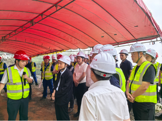重慶萬(wàn)州訊:8月12日下午,中國(guó)中鐵黨委常委、副總裁、總工程師孔遁率隊(duì)到重慶沿江高速公路5標(biāo)項(xiàng)目部長(zhǎng)安隧道出口進(jìn)行現(xiàn)場(chǎng)踏勘,中國(guó)中鐵生產(chǎn)監(jiān)管中心總經(jīng)理李少利,中鐵云投(中鐵開(kāi)投)總工程師、副總經(jīng)理劉萬(wàn)林,中鐵一局集團(tuán)有限公司副總經(jīng)理崔磊,副總工兼生產(chǎn)管理部長(zhǎng)雷向鋒,五公司總經(jīng)理武濤,集團(tuán)公司標(biāo)準(zhǔn)策劃科相關(guān)負(fù)責(zé)人,五公司生產(chǎn)管理部相關(guān)負(fù)責(zé)人,重慶沿江高速公路5標(biāo)項(xiàng)目部負(fù)責(zé)人及其他管理人員隨同。