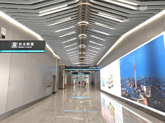 (廣州訊)近日,由公司承建的廣河高鐵旅客集散廳“環影光鏈”景觀樓梯在廣州白云機場T3航站樓內正式落成。這座融合科技與美學的特色樓梯迅速“出圈”,吸引眾多市民專程前來拍照打卡,成為銜接航空樞紐與軌道交通的“網紅”風景線。