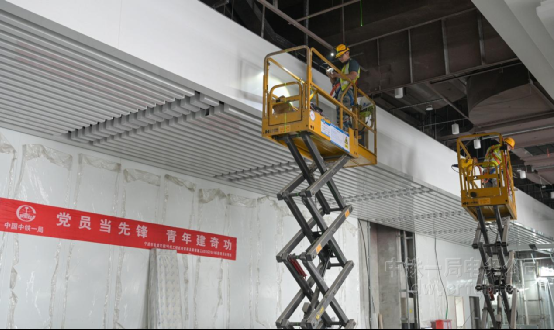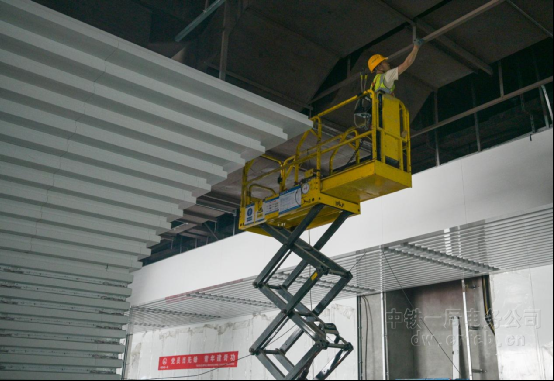 在負(fù)一樓的車站大廳,各項(xiàng)作業(yè)的工人們?nèi)蔽溲b,在花火四濺的高溫環(huán)境下持續(xù)作業(yè)。遠(yuǎn)處成槽機(jī)和近處鋼筋焊接聲此起彼伏,一片熱火朝天的大干景象。偌大的站廳內(nèi),負(fù)責(zé)裝修的工人師傅們正在進(jìn)行高處吊頂作業(yè)。只見(jiàn)他們精準(zhǔn)測(cè)量、仔細(xì)安裝,一塊塊吊頂板材在他們手中被有序拼接,逐漸構(gòu)建出平整美觀的頂部造型。與此同時(shí),技術(shù)人員使用激光水平儀對(duì)柱面燈具進(jìn)行垂直度校準(zhǔn),配合柱面鋁板安裝班組完成鋁板接縫微調(diào),確保燈具安裝位置與包柱面裝飾線條精準(zhǔn)對(duì)齊,最終形成照明均勻、裝飾一體的公共空間視覺(jué)效果。在不同區(qū)域忙碌作業(yè)的施工人員們,雖各自專注手頭工作,卻又似緊密咬合的齒輪,大家為了共同的目標(biāo),在這復(fù)雜的施工現(xiàn)場(chǎng)協(xié)同運(yùn)轉(zhuǎn),讓小洋江站的機(jī)電安裝工作穩(wěn)步推進(jìn)。