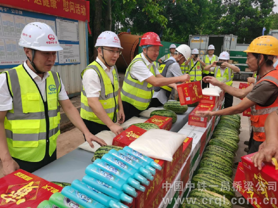 在花地河項目施工現(xiàn)場,劉輝代表公司工會向奮戰(zhàn)在一線的人員送上了礦泉水、涼茶、西瓜、綠豆等防暑降溫物品。他強調,高溫天氣室外施工人身安全是第一位,指揮部片區(qū)各項目要嚴格遵守夏季作息時間,盡量避免高溫時段戶外作業(yè),同時要密切關注人員的身體狀況,確保所有作業(yè)人員在健康、安全的環(huán)境下正常作業(yè)。