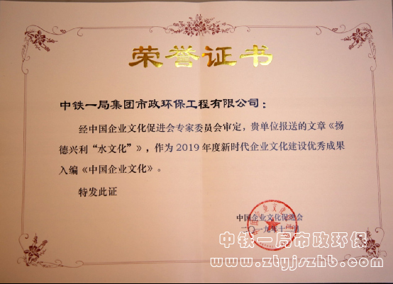 公司“水文化”建設獲中國企業文化促進會2019年新時代企業文化建設優秀成果稱號