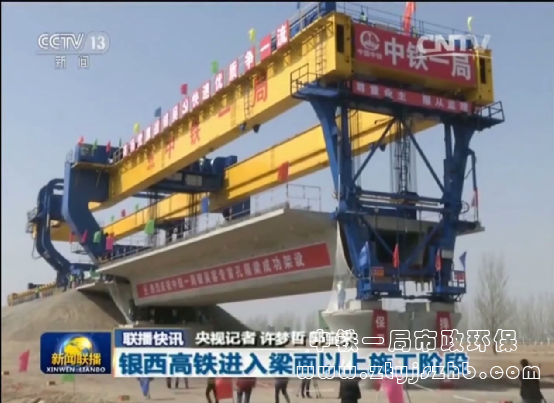 中央電視臺播出公司承建的銀西鐵路架設第一片箱梁