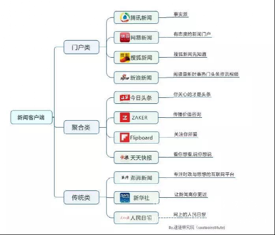 圖1-2 目前網絡新聞媒體客戶端的分類