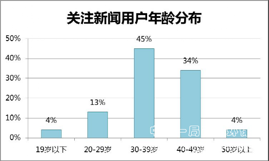 通過上圖可以看出來,關注新聞的用戶主要集中于30歲到49歲的區間,屬于中青年人階層。這代人大多是80后以及70后,更多的關注的是所處行業的行業資訊以及國際民生等類型的新聞,同比對于其他類型的新聞關注度一般不會太高,因此要獲得廣泛良好的宣傳效果,首先必須要讓自己企業深入人心,然后對于企業有了良好的認知以后有了關注以后,企業的所有的宣傳工作在社會范圍內形成廣面效應。