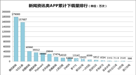 圖2-3 截止2016年底新聞資訊APP下載量排行