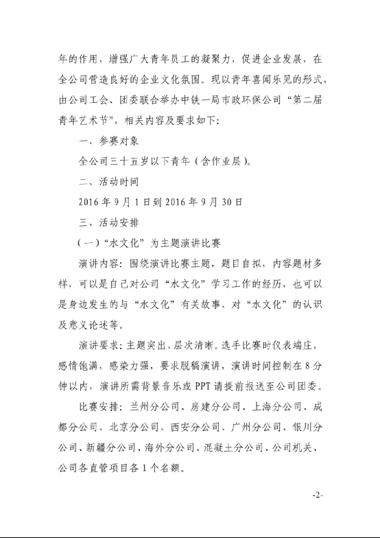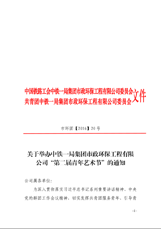 關于舉辦中鐵一局市政環保工程有限公司“第二屆青年藝術節”的通知