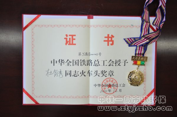 受過何種獎勵稱號:2007 年榮獲中鐵一局集團公司先進個人、2010年榮獲中鐵一局集團市政環保公司十大標兵、2011年榮獲中華全國鐵路總工會火車頭獎章、2013年榮獲中鐵一局集團市政環保公司十大標兵及蘭州鐵路局中川鐵路公司優秀項目經理、2014年12月榮獲打造全國一流高鐵示范站優秀項目經理