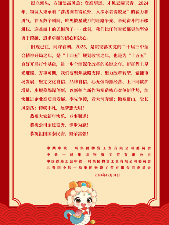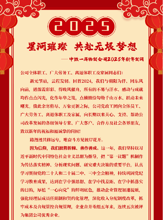星河璀璨 共赴無(wú)垠夢(mèng)想 ——中鐵一局物貿(mào)公司2025年新年獻(xiàn)詞