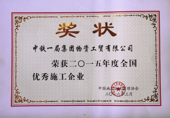 全國優秀施工企業獎狀