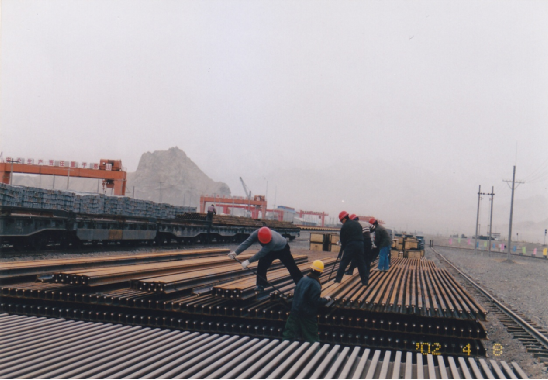 2002年4月物貿公司青藏物資站職工在整理鋼軌