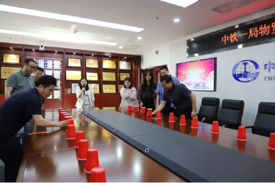 “翻杯子競技” 游戲則將團隊協作展現得淋漓盡致。職工們被2組,每組5 人。小組成員依次接力翻轉杯子,大家緊密配合,爭分奪秒。現場氣氛緊張而熱烈,最終用時最短的小組贏得了勝利,這個游戲不僅考驗了團隊的默契,更讓職工們深刻體會到了團結的力量。