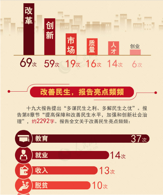 [編者按]黨的十九大召開(kāi)以來(lái),習(xí)近平代表第十八屆中央委員會(huì)向大會(huì)所作的報(bào)告引發(fā)強(qiáng)烈反響。今天,人民網(wǎng)帶您從不同的角度看十九大報(bào)告,透過(guò)數(shù)字學(xué)習(xí)報(bào)告精神。