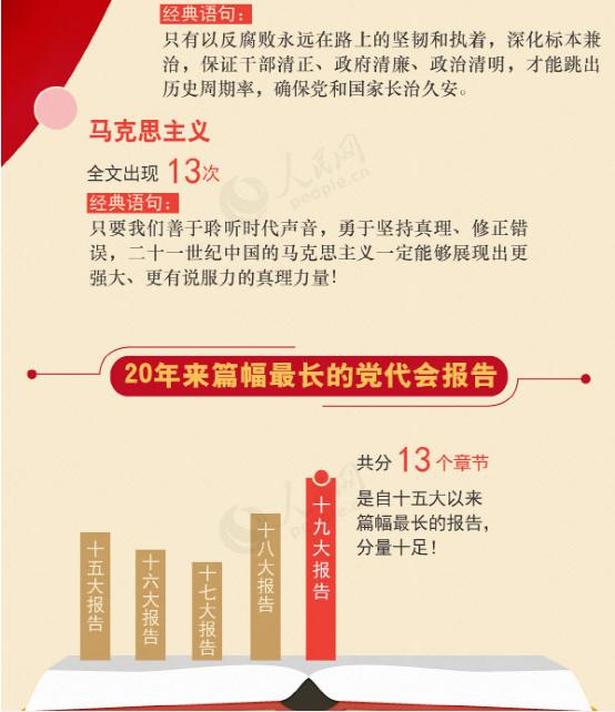 十九大報(bào)告共分13個(gè)章節(jié),是自十五大以來(lái)篇幅最長(zhǎng)的黨代會(huì)報(bào)告,分量十足!