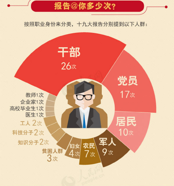 按照職業(yè)身份來(lái)分類,十九大報(bào)告分別提到以下人群: